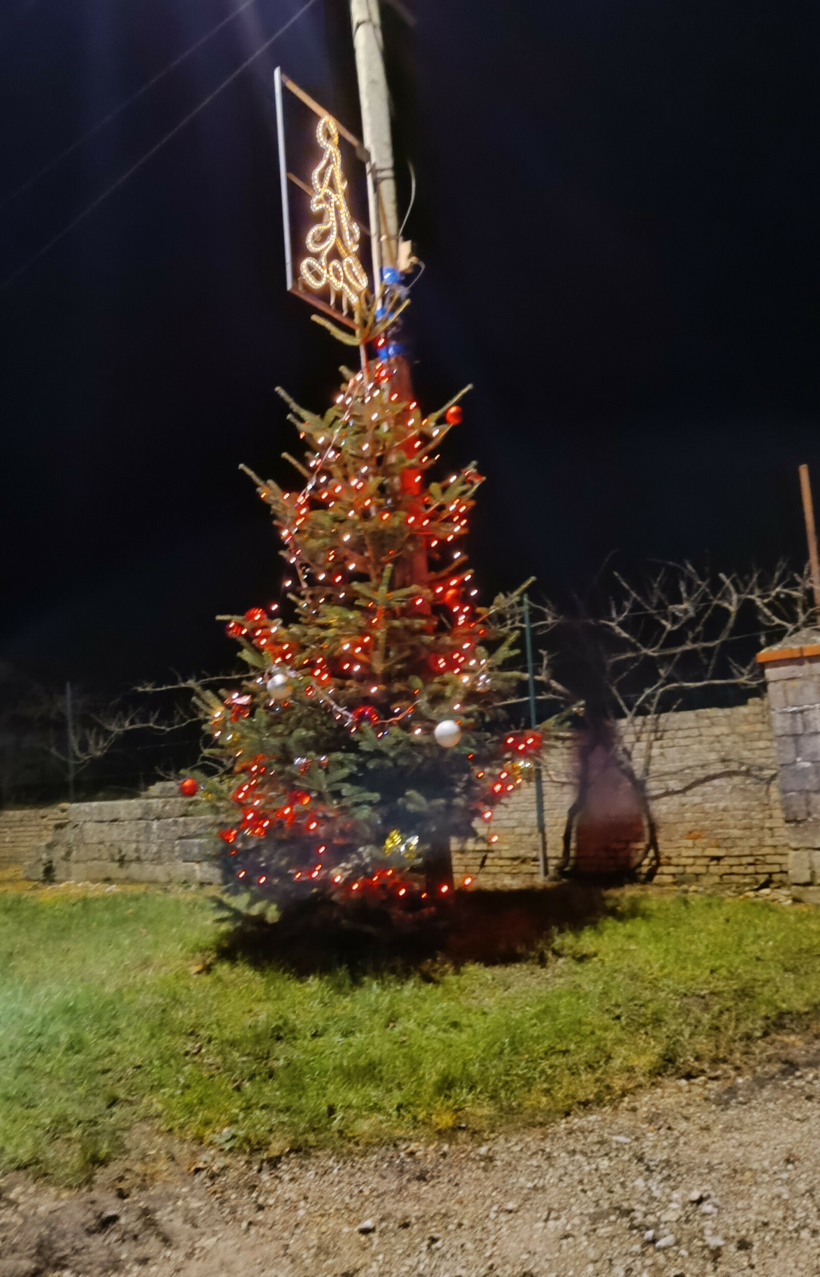 Au niveau communal, l'installation des illuminations sur les lampadaires a été réalisée par Vincent, Franck et Jean- Marie avec son manitou.