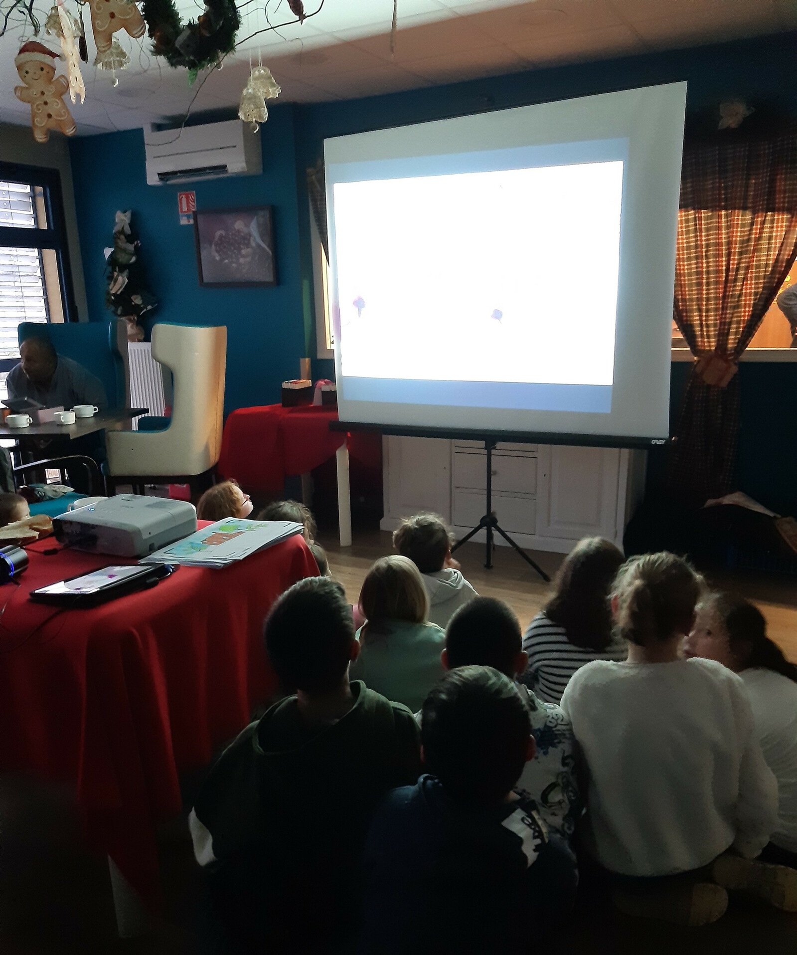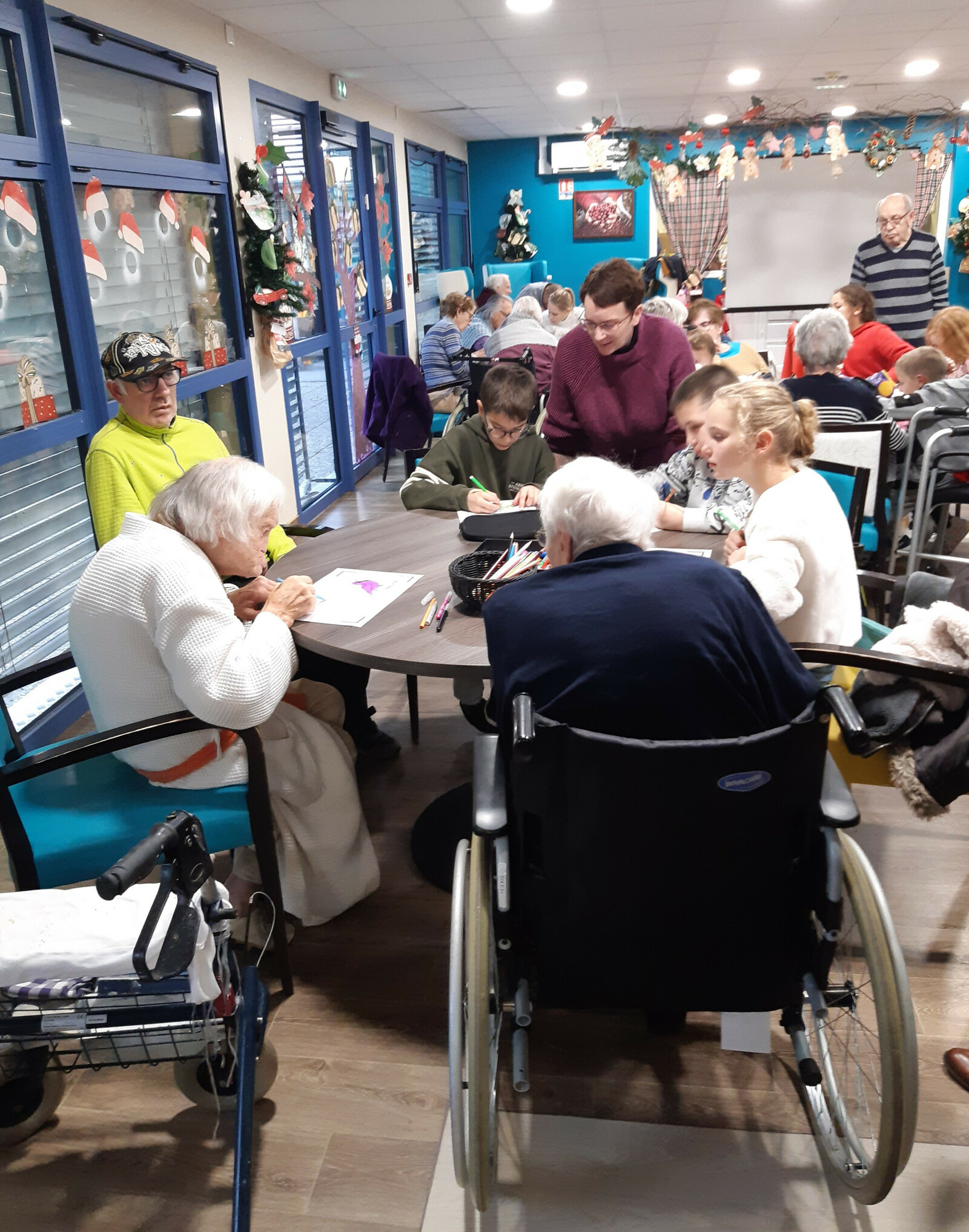Vendredi après-midi, les élèves de CE2 et CM accompagnés de leur maître ont participé à l'animation proposée par la bibliothèque. Marie- Claude et Marie-Jeanne ont distribué des planches à colorier aux enfants et aux résidents. Ces dessins ont été mis sur l'application Blinkbook et projetés sur écran. Tous ont vu leurs dessins s'animer et ils ont écouté les fables de La Fontaine : le corbeau et le renard, le lièvre et la tortue... Certains résidents ont eu plaisir à les dire en même temps. C'était un beau moment d'échanges. Les enfants ont été très à l'écoute et très participatifs. Un goûter a été offert pour clôturer cet agréable après-midi.