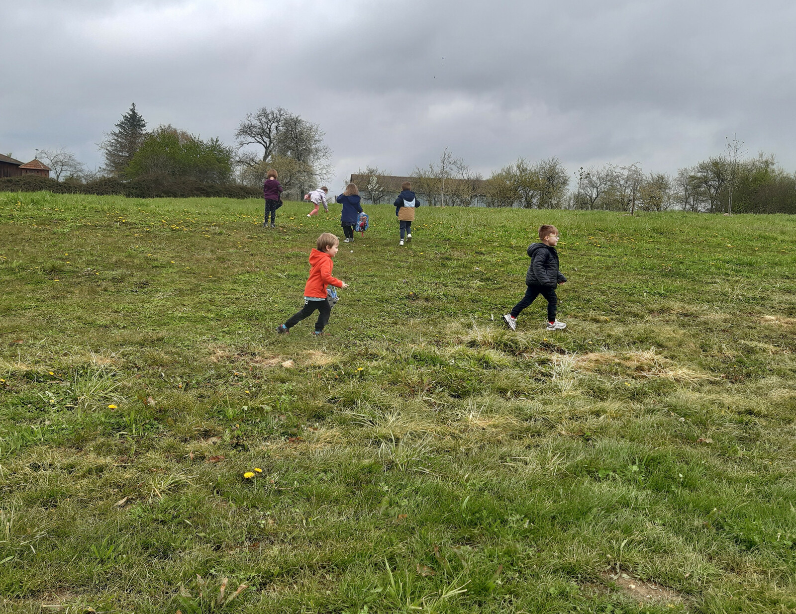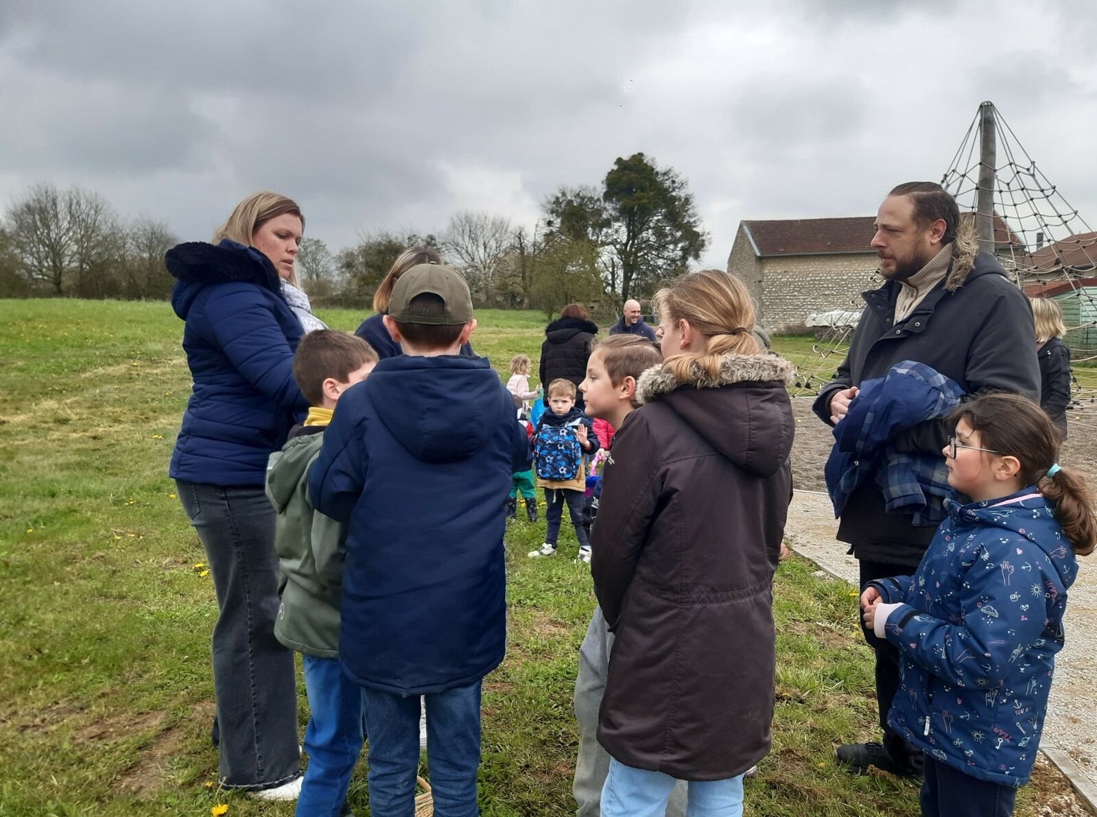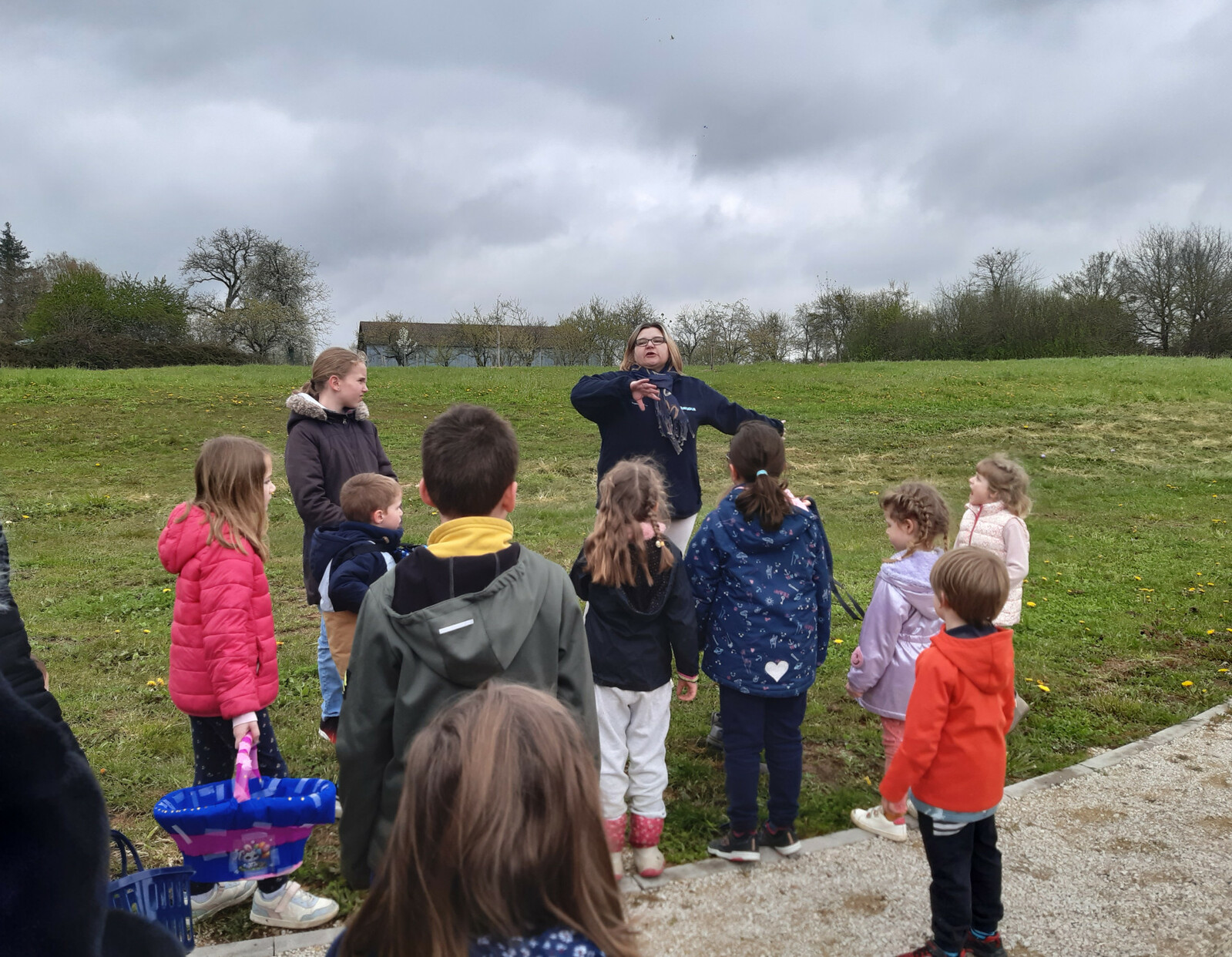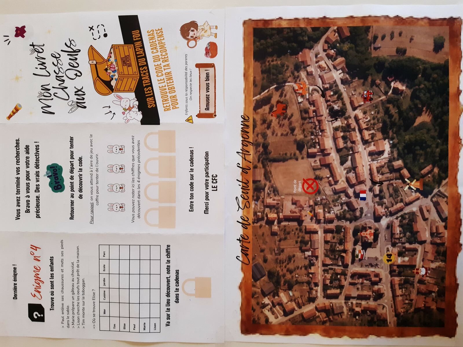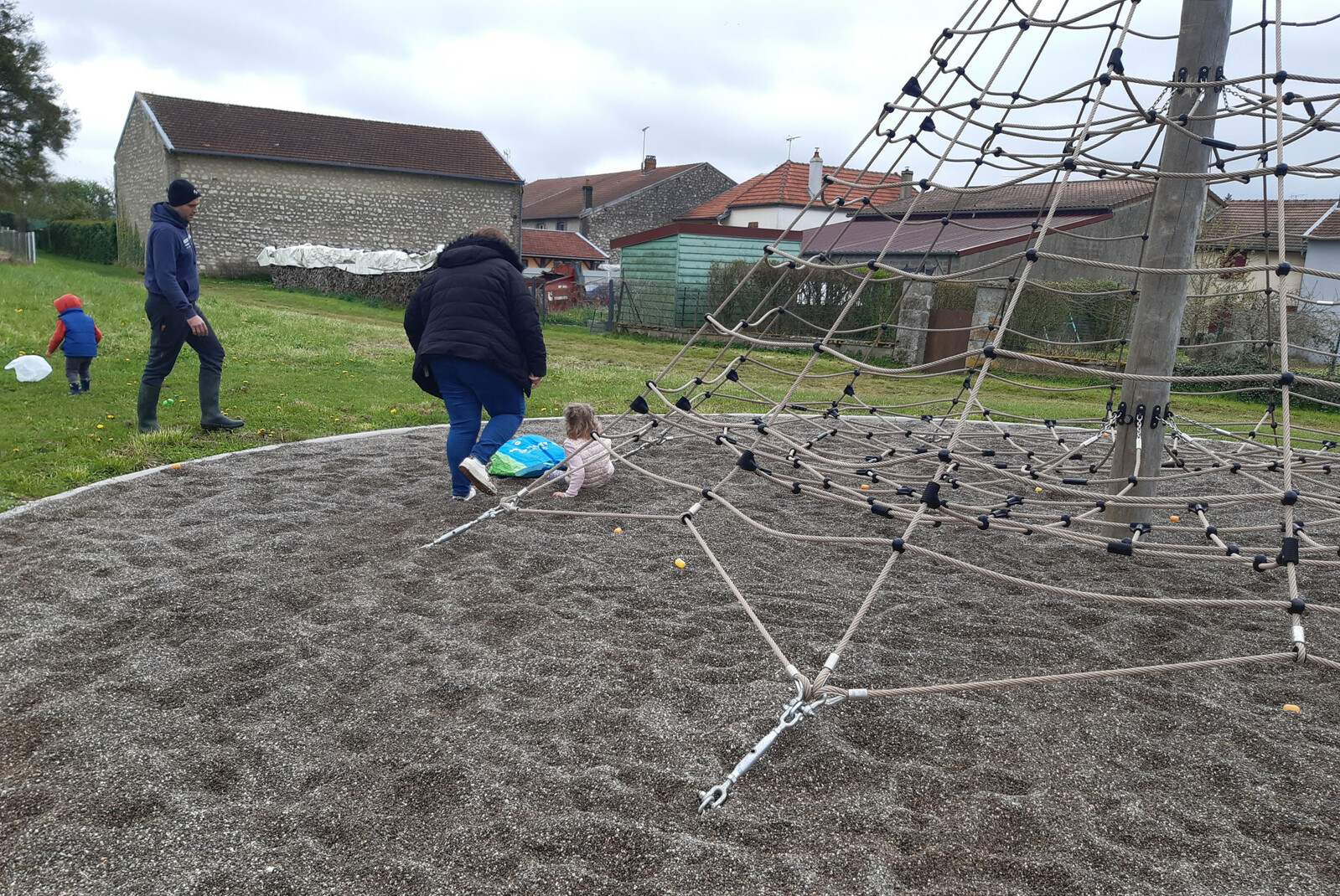 Samedi 4 avril, le Comité des Fêtes avait donné rendez-vous aux enfants à l'aire de jeux pour une chasse aux oeufs. Sandrine a expliqué le déroulement au groupe des petits : ramasser les oeufs factices dispersés dans toute l'aire de loisirs pour les échanger contre des oeufs en chocolat. Mélanie a donné les consignes aux plus grands accompagnés de leurs parents pour un parcours dans le village avec des énigmes à résoudre pour trouver les 4 chiffres permettant l'ouverture du coffre.