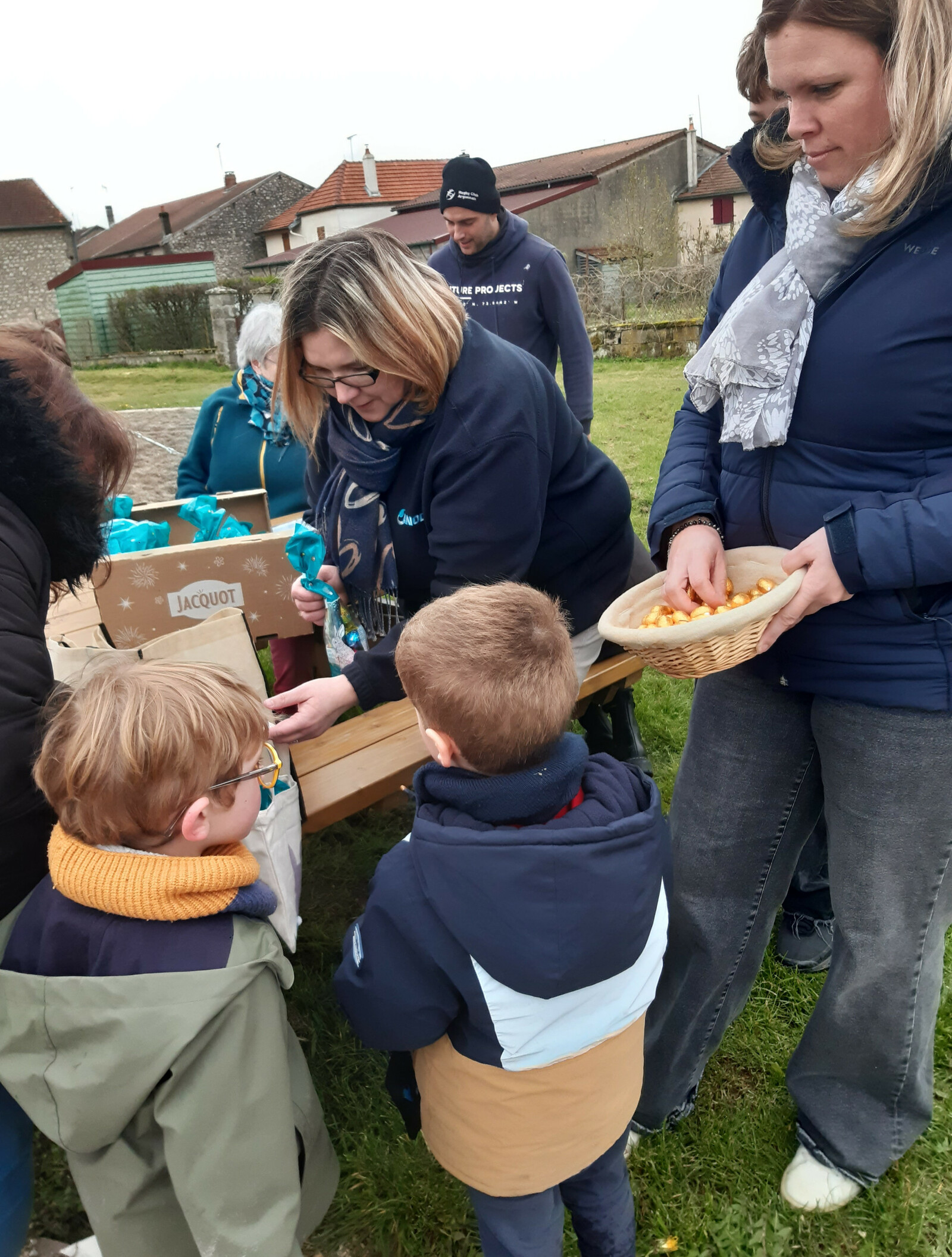 Pour terminer, chaque enfant a reçu un paquet de chocolats. Parents et enfants ont partagé le goûter préparé par les bénévoles du Comité des fêtes. Merci à tous.